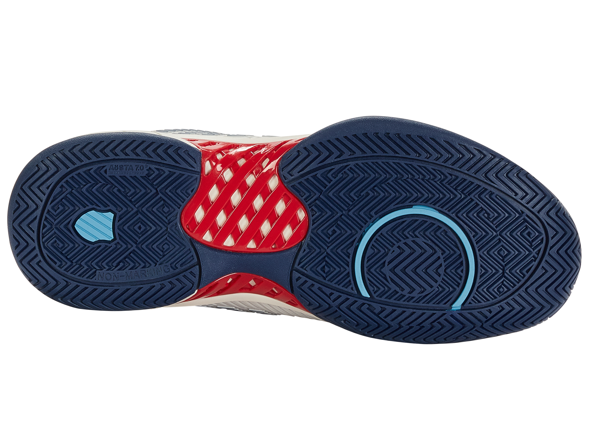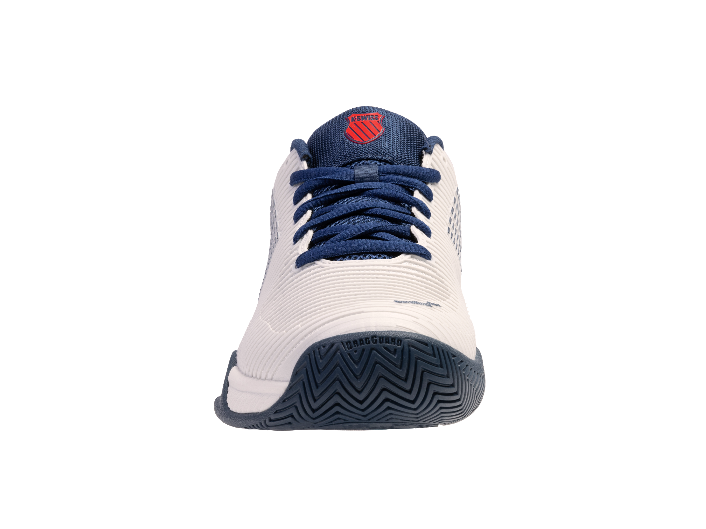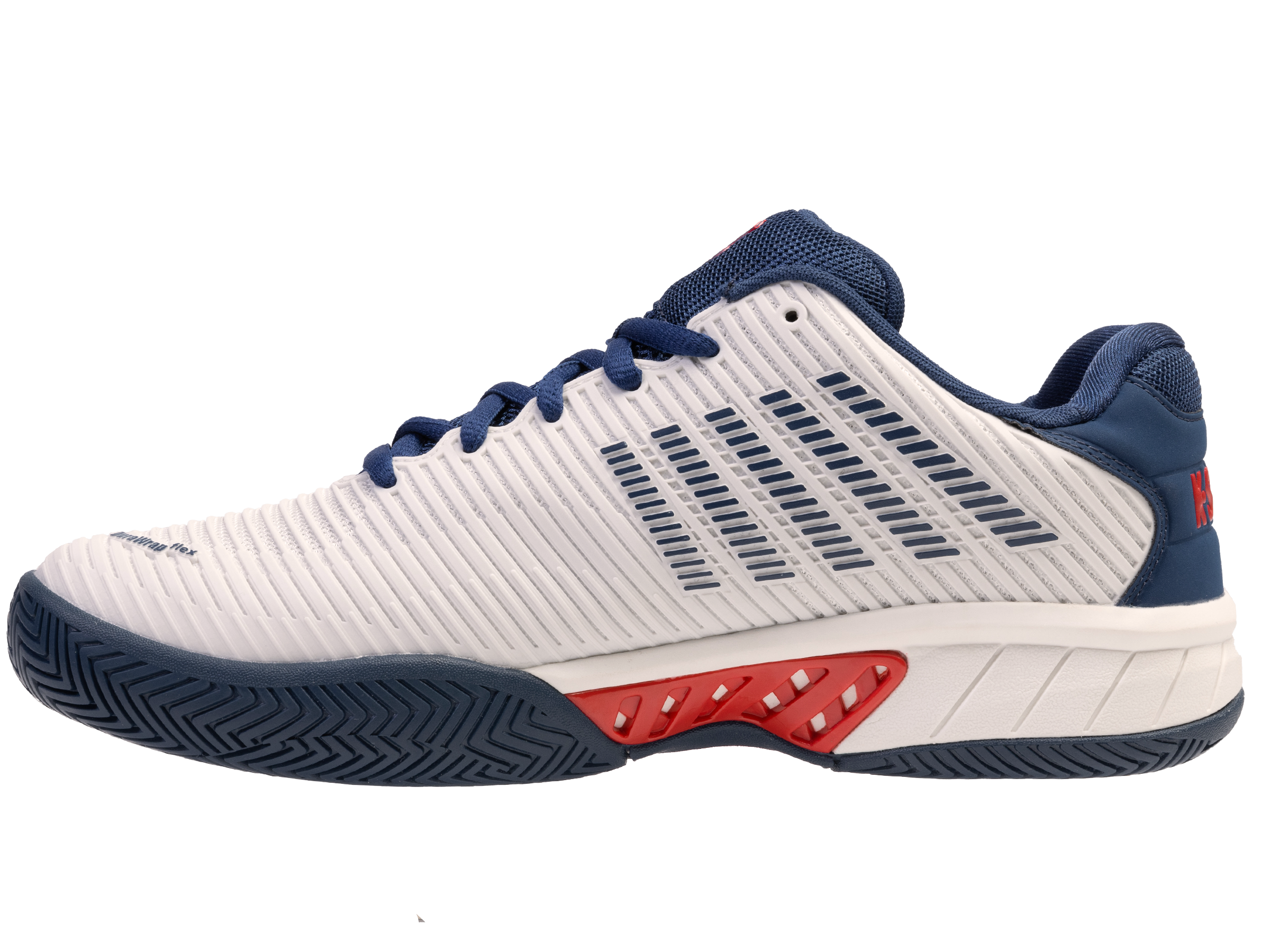 De Hypercourt Express 2 is geïnspireerd op de originele klassieke tennisschoen, maar voorzien van de nieuwste materialen en technologieën voor de juiste ondersteuning en extra comfort. De schoen heeft een normale pasvorm en beschikt over een bovenzijde van synthetisch materiaal en mesk materiaal die zorgt voor een prettige combinatie van lichtgewicht comfort en ondersteuning. Bovendien zorgt het waterafstotende effect van de bovenzijde ervoor dat de schoen niet zwaar wordt en de voet droog blijft. De mesh tong en mesh panelen in het bovenwerk zorgen voor een hoog ademend vermogen en uitstekende ventilatie waardoor de voeten koel en droog worden gehouden. De Surgelite tussenzool zorgt voor maximale schokdemping en extra duurzaamheid. De tussenzool bevat tevens de ‘GuideGlide’ constructie en garandeert een comfortabele en stabiele loopbeweging. De Ortholite binnenzool zorgt daarnaast voor lichte demping. De heel grip lining vermindert slijtage. De DuraWrap en DragGuard in de buitenzool zorgen voor een extra laag bescherming op essentiële steunpunten van de schoen. De non-marking buitenzool maakt de schoen geschikt voor gravel, smashcourt en kunstgras.