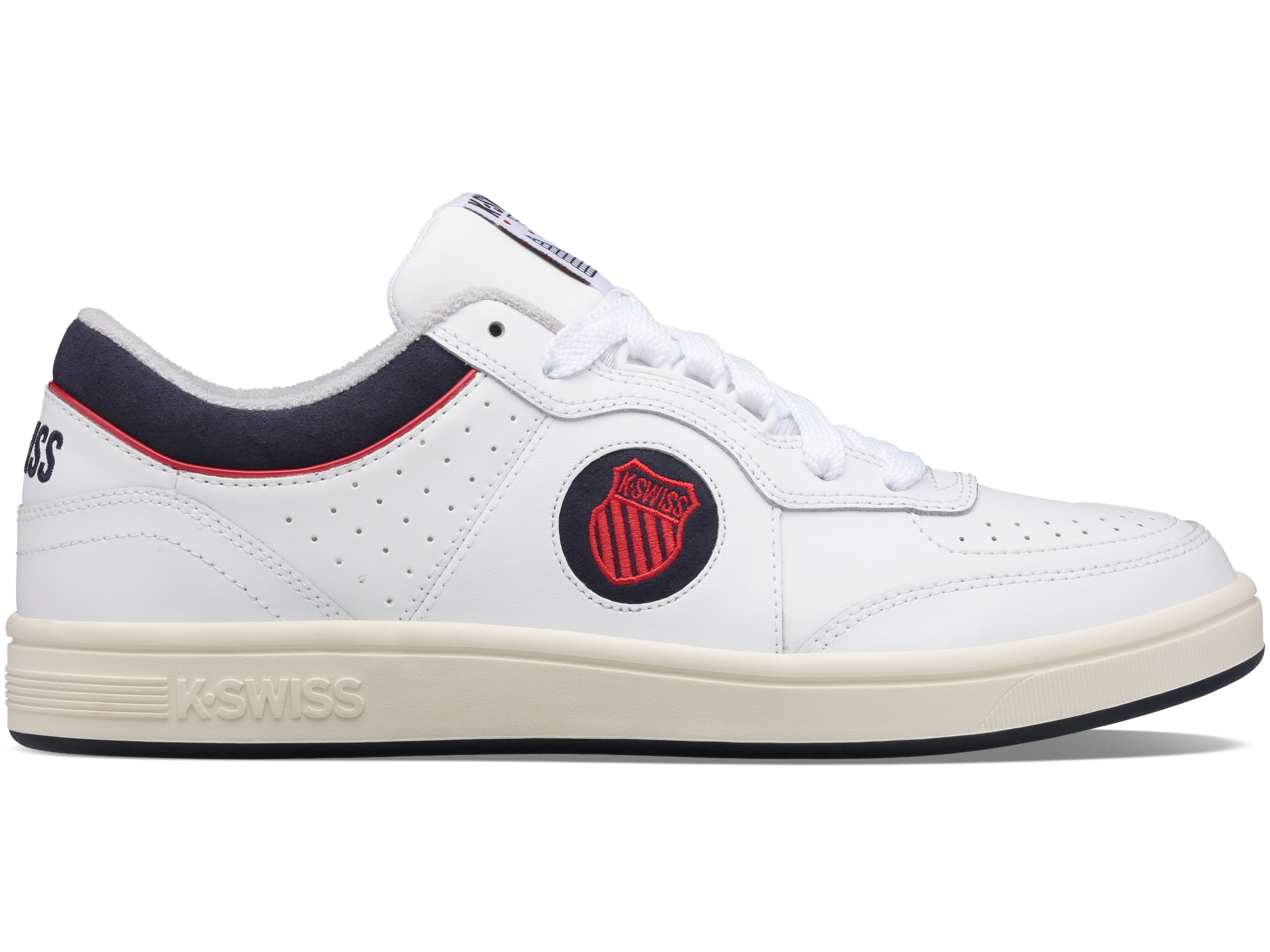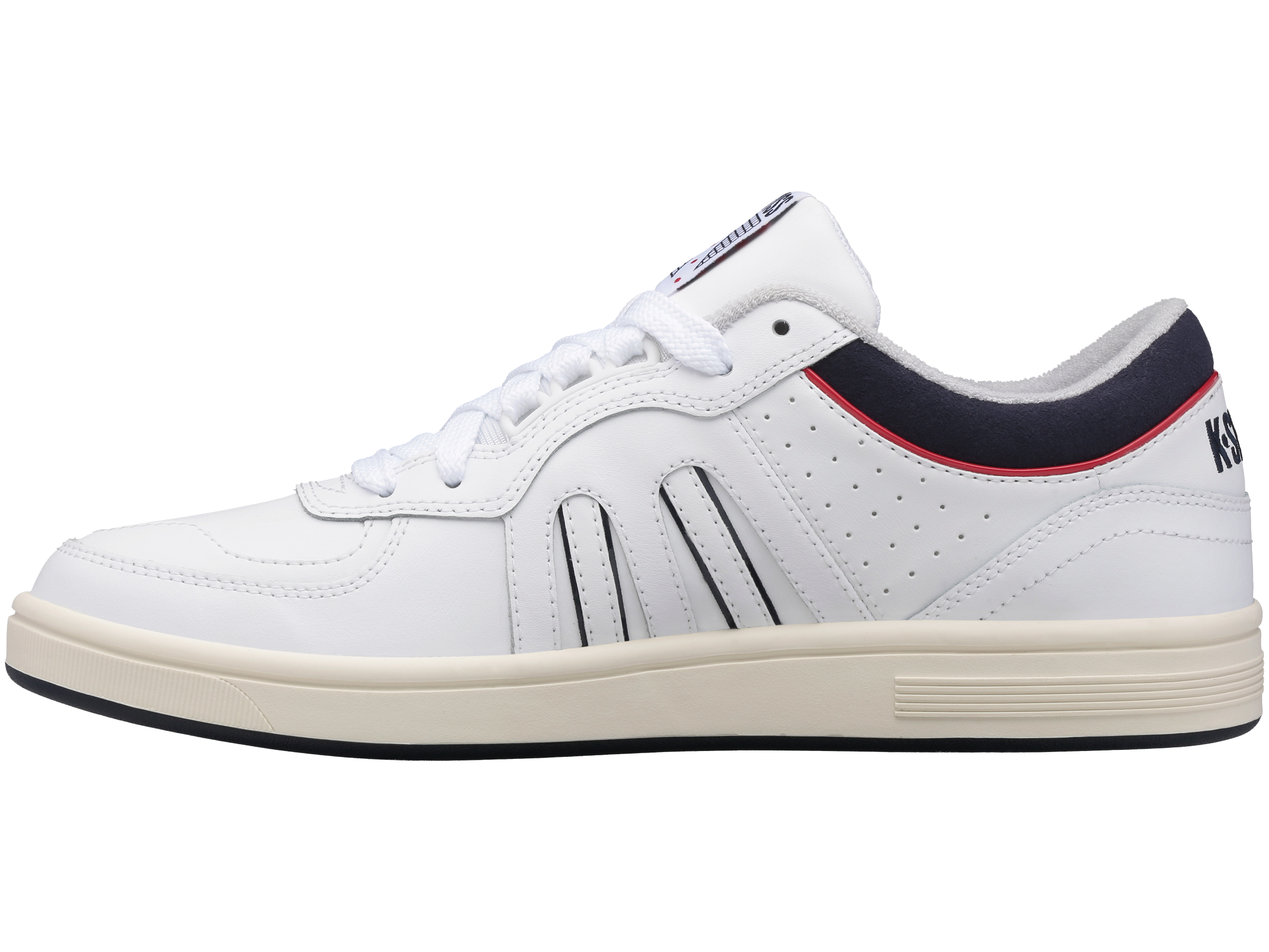 Spanning decades of tennis heritage, the North Court is the perfect retro athletic shoe for any occasion. Borrowing inspiration and details from multiple eras of classic K-Swiss, the North Court utilizes layered material panels for a unique, asymmetric upper dripping in vintage style. A padded collar underlay and medial piping add pops of color to the stark exterior, while the mesh tongue, woven tongue label, and terry cloth interior anchor its ode to tennis heritage. The North Court sits atop a clean, heritage inspired rubber cupsole for all day comfort in any setting.