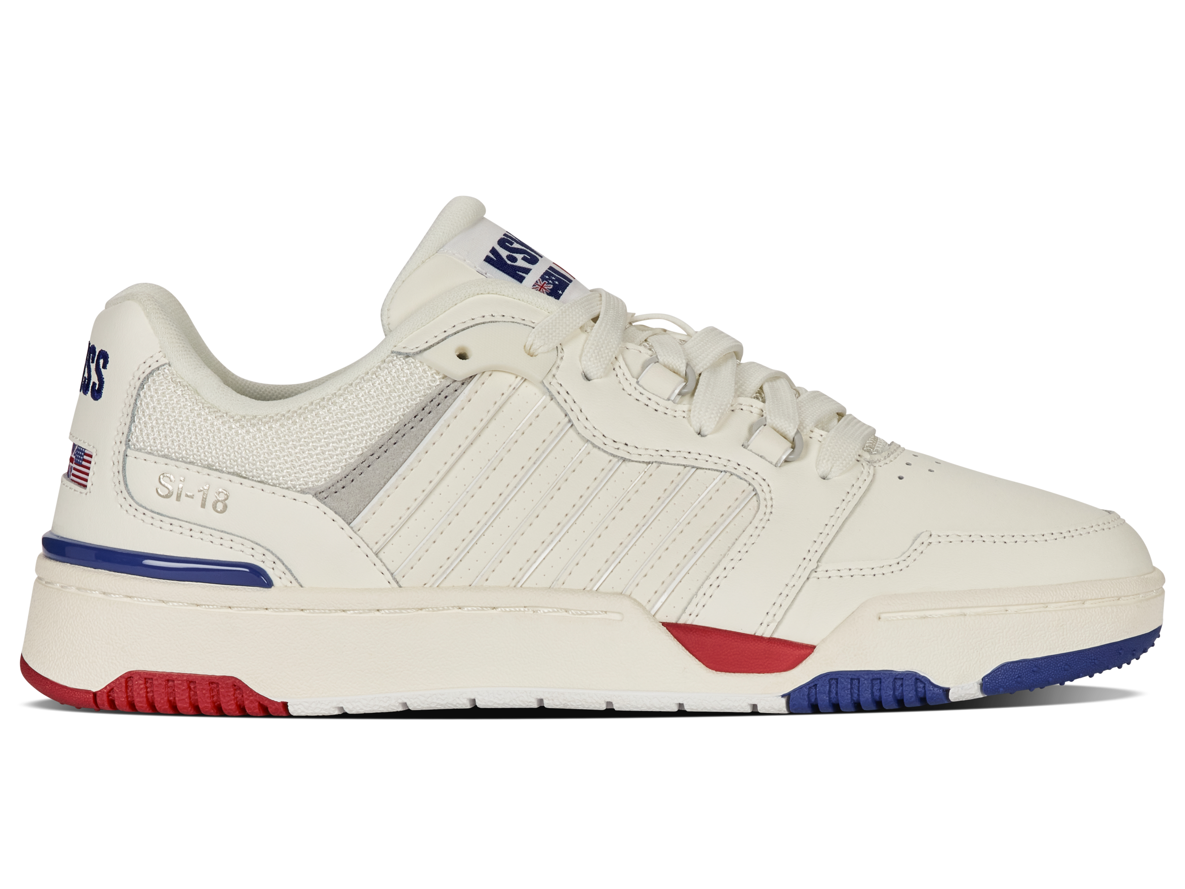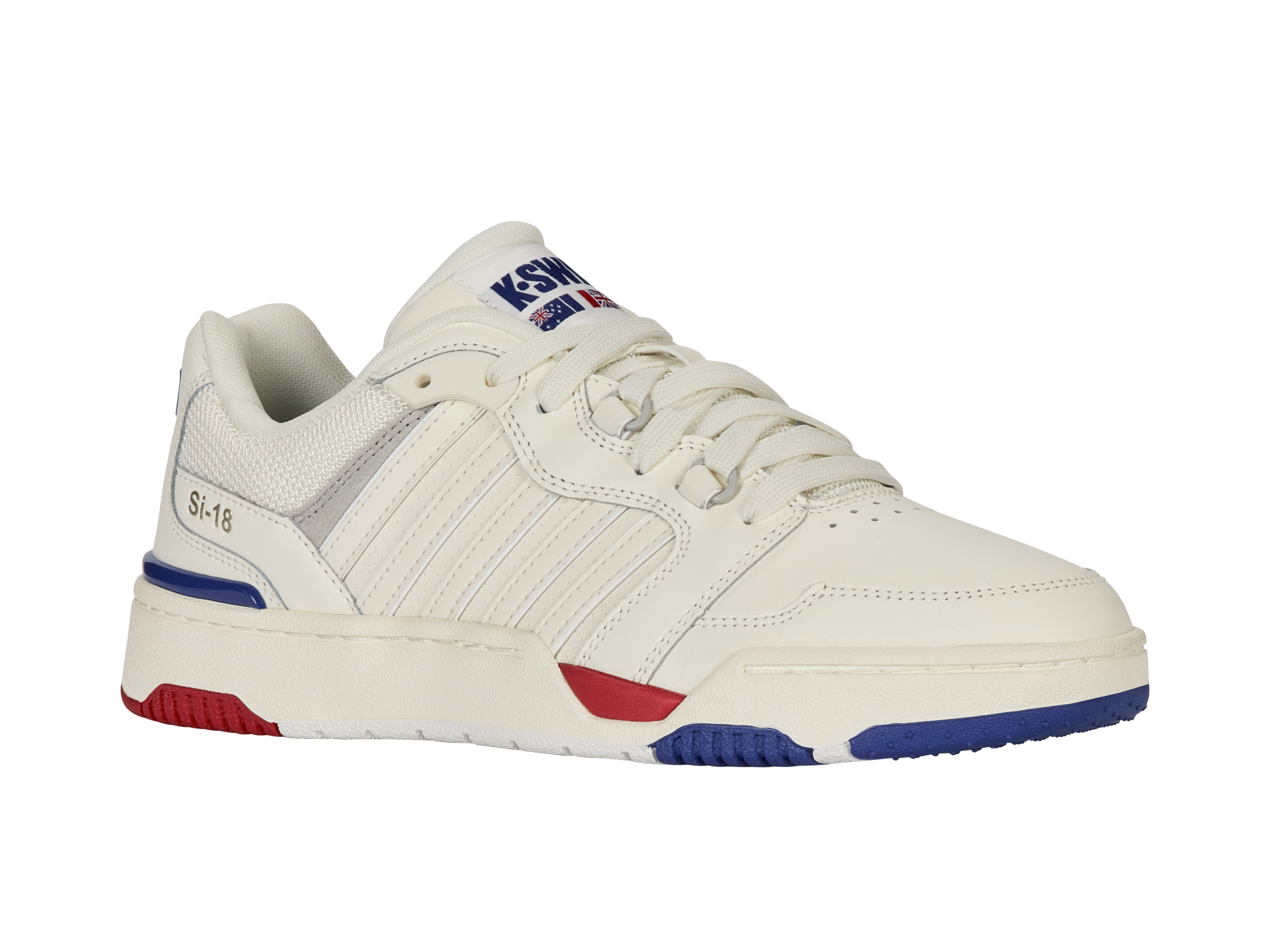 Der Si-18 Rival wurde von den K-Swiss Tennisarchiven der 80er Jahre inspiriert und ist ein Neukommer für die Frühjahr/Sommer-Saison. Dieser Lifestyle-Schuh, der eine Außensohle mit Surgelite-Technologie aus unserem Performance-Tennis-Sortiment ausgestattet ist, bietet Komfort und eine hervorragende Dämpfung, um Sie auch außerhalb der Tennisplätze zu begleiten.Sein Design erinnert an die Ursprünge der Marke und das Modell Classic VN mit seinen fünf Seitenstreifen. Dieser Hybrid-Sneaker verkörpert einen "klassisch-modernen" Stil.Er verbindet das Erbe des Tennissports der 80er Jahre und die sich ständig verändernden Leistung des Tennissports und spiegelt so fast 60 Jahre Geschichte.Tauchen Sie mit dem Si-18 Rival, einem Sneaker, der sich auf allen Plätzen wohlfühlt, in die K-SWISS Welt ein.