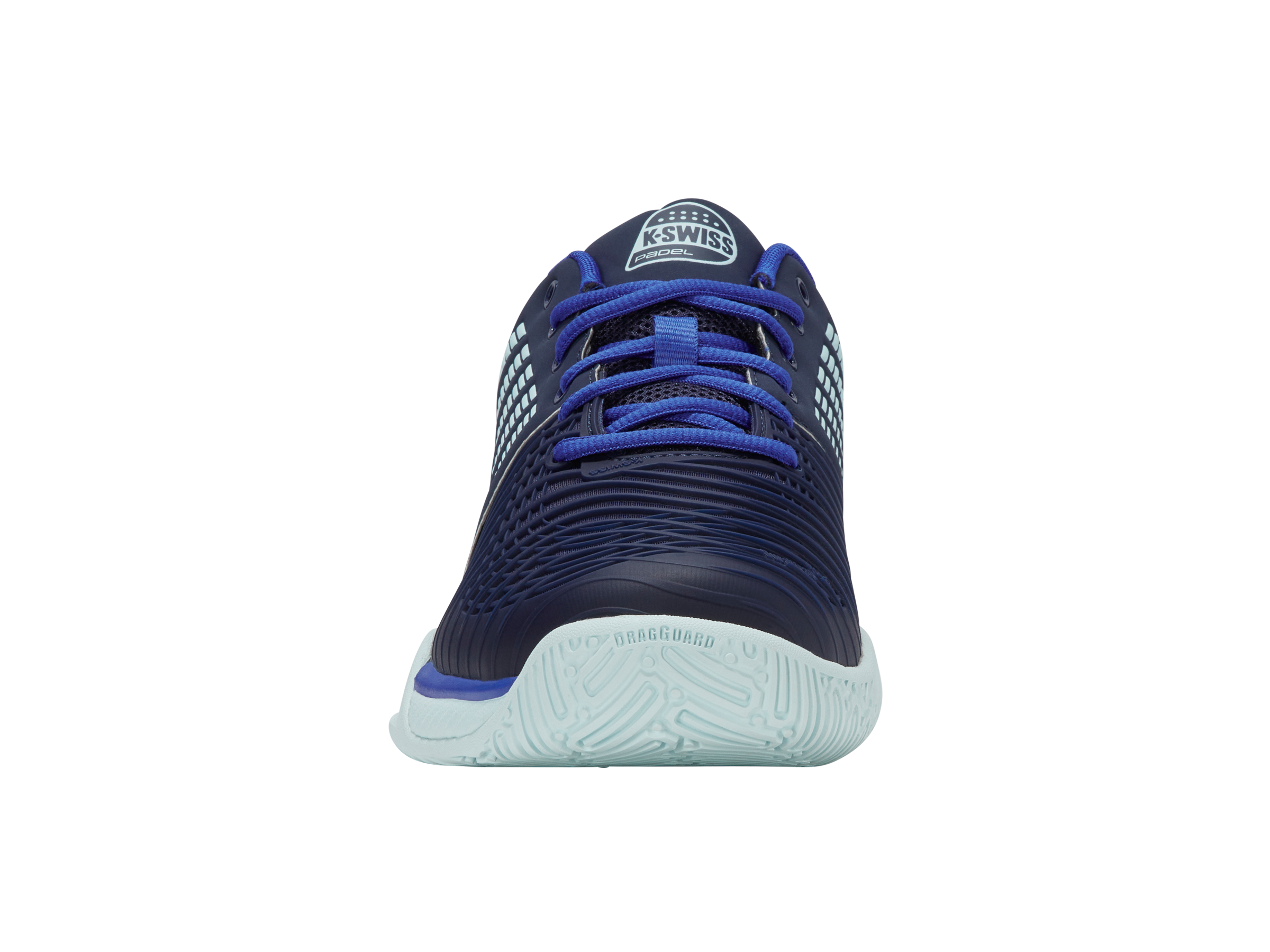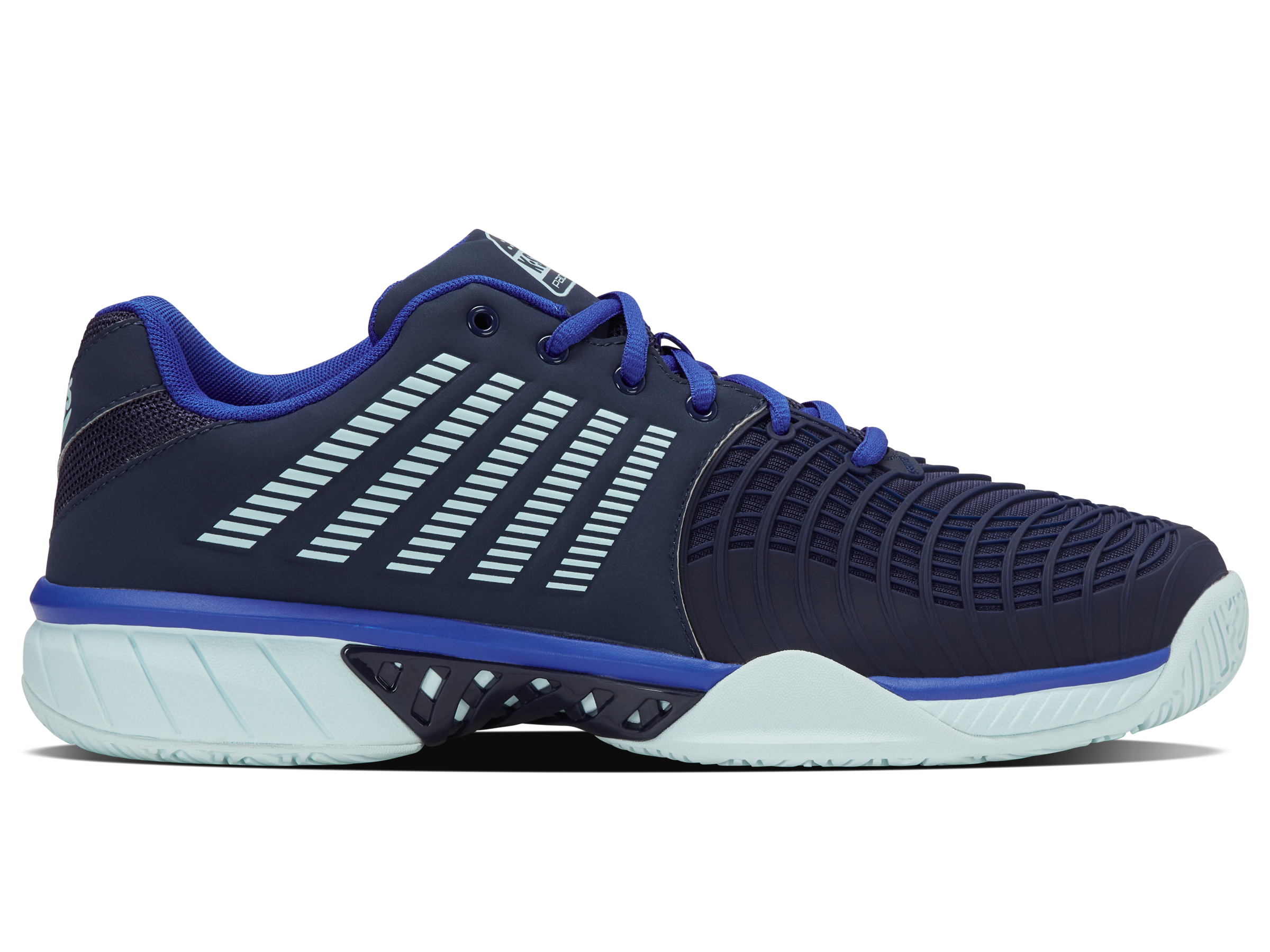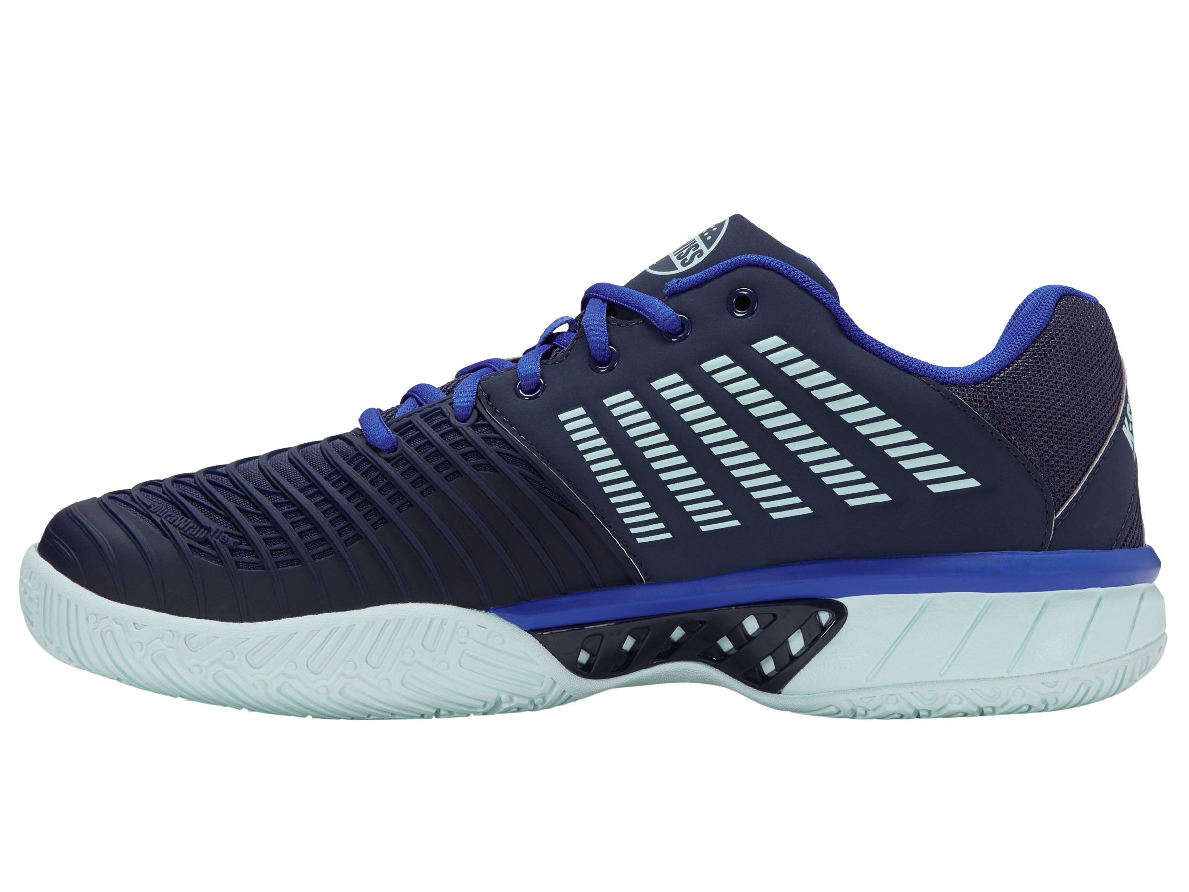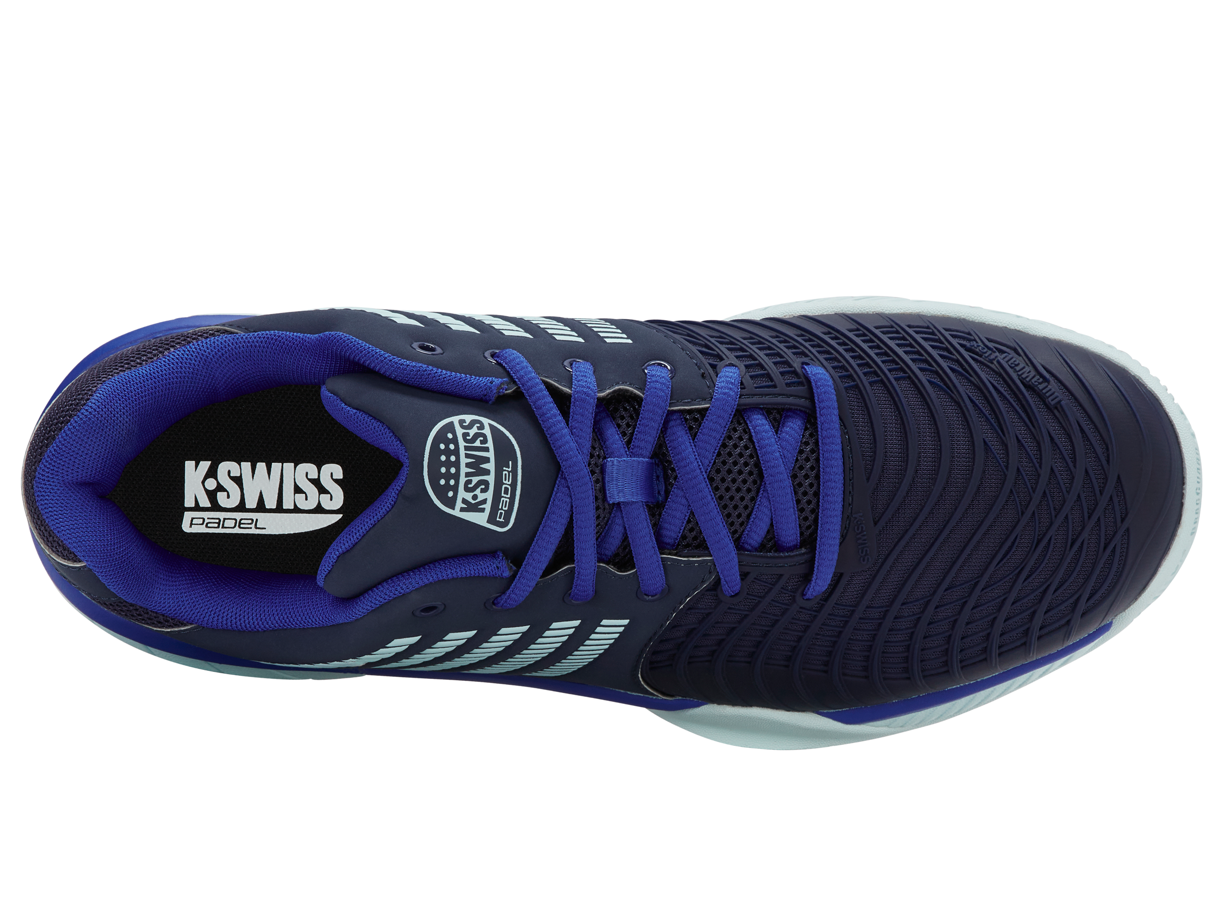 Der Express Light 3 HB Padel ist ein Padel-Schuh mit geringem Gewicht, der für Leistung auf dem Platz und ein hohes Maß an Komfort entwickelt wurde. Das Obermaterial besteht aus DuraWrap Flex, einem neu entwickelten, vorgeformten RPU-Käfig, der flexiblen Halt und Schutz beim Rutschen bietet. Innen bietet ein gut gepolsterter Kragen im Knöchelbereich Komfort und Stabilität, während eine gestanzte Schaumstoffeinlage unter dem Fuß für reaktionsfreudige Dämpfung sorgt. Der Express Light 3 hat eine HB-Außensohle mit tief eingekerbtem Fischgrätenmuster für außergewöhnliche Traktion auf dem Padel-Platz sowohl auf Indoor- als auch auf Outdoor-Belägen.