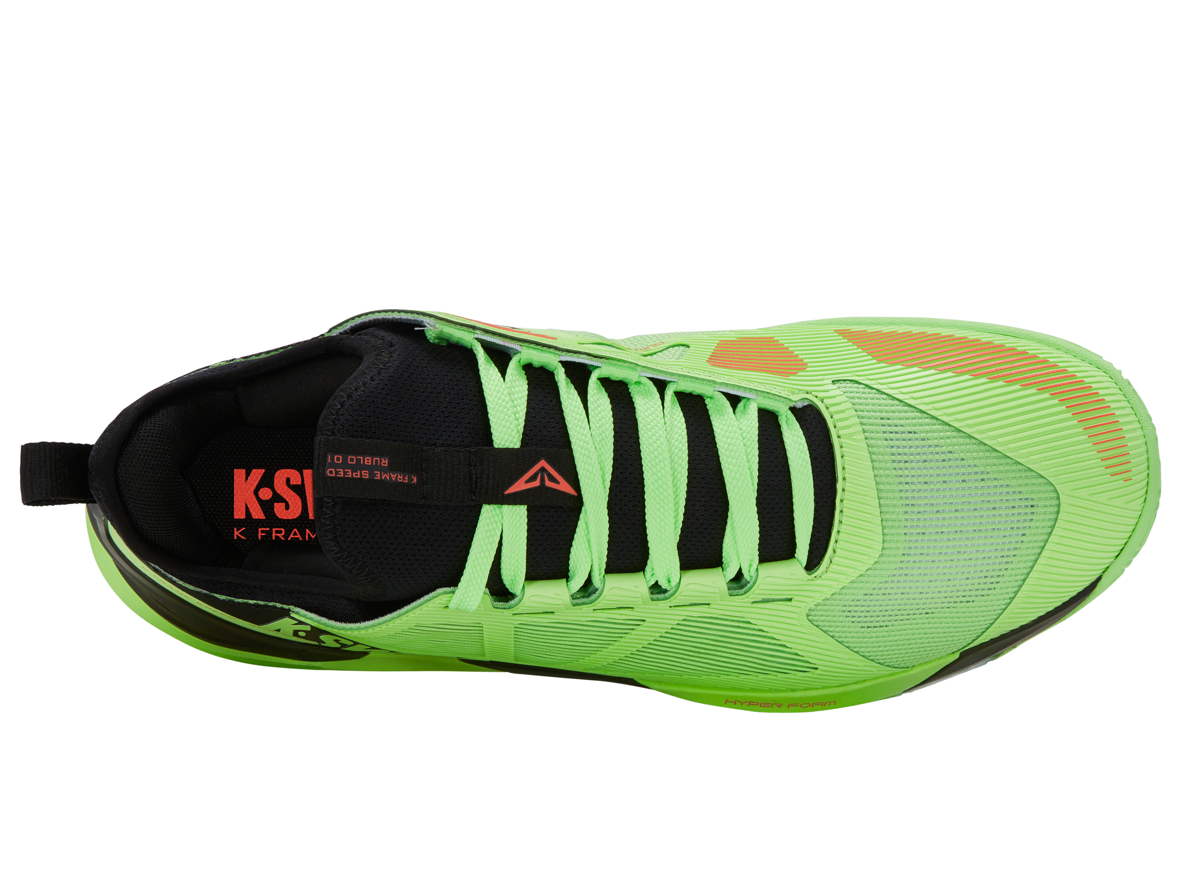 Der K-Frame Speed Rublo Clay ist der Signature-Schuh, der in Zusammenarbeit mit ATP-Star Andrey Rublev für Höchstleistungen auf Sandplätzen entwickelt wurde. Die innovative TPU K-Frame-Struktur unter dem Vorfuß sorgt für herausragende Stabilität bei schnellen und wendigen Bewegungen. Die Zwischensohle ist mit dem neuen Hyper Foam ausgestattet und bietet außergewöhnliche Energierückgabe sowie hervorragende Dämpfung. Das Obermaterial aus leichtem, atmungsaktivem Duraprint erhöht die Haltbarkeit und Stabilität – ideal für aggressive Spieler.