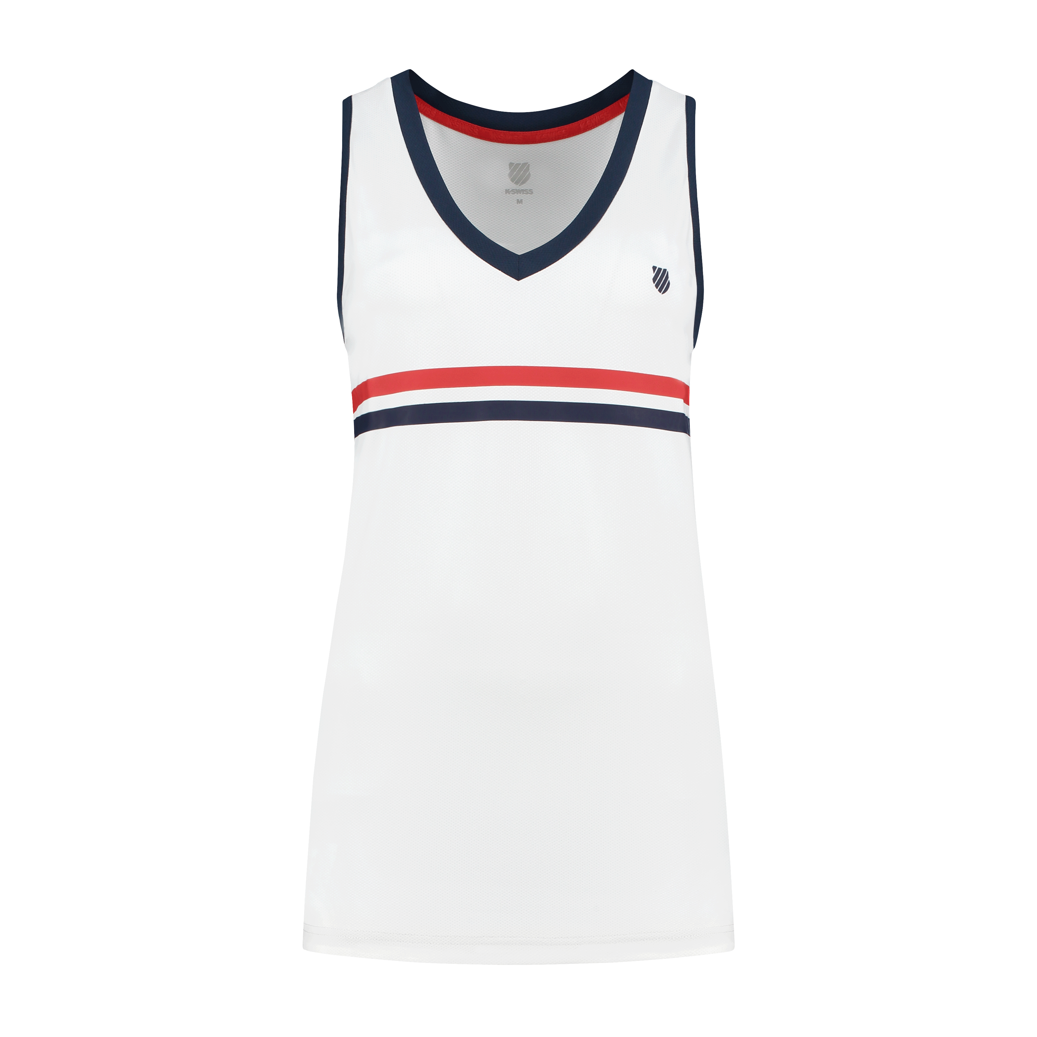 The K-Swiss Heritage Tank Top Classic is part of the classic Heritage collection. Made of 87% polyester and 13% elastane, it offers ultimate comfort. This sporty tennis top has a V-neck for easy accessibility and convenience and features traditional tennis colors.