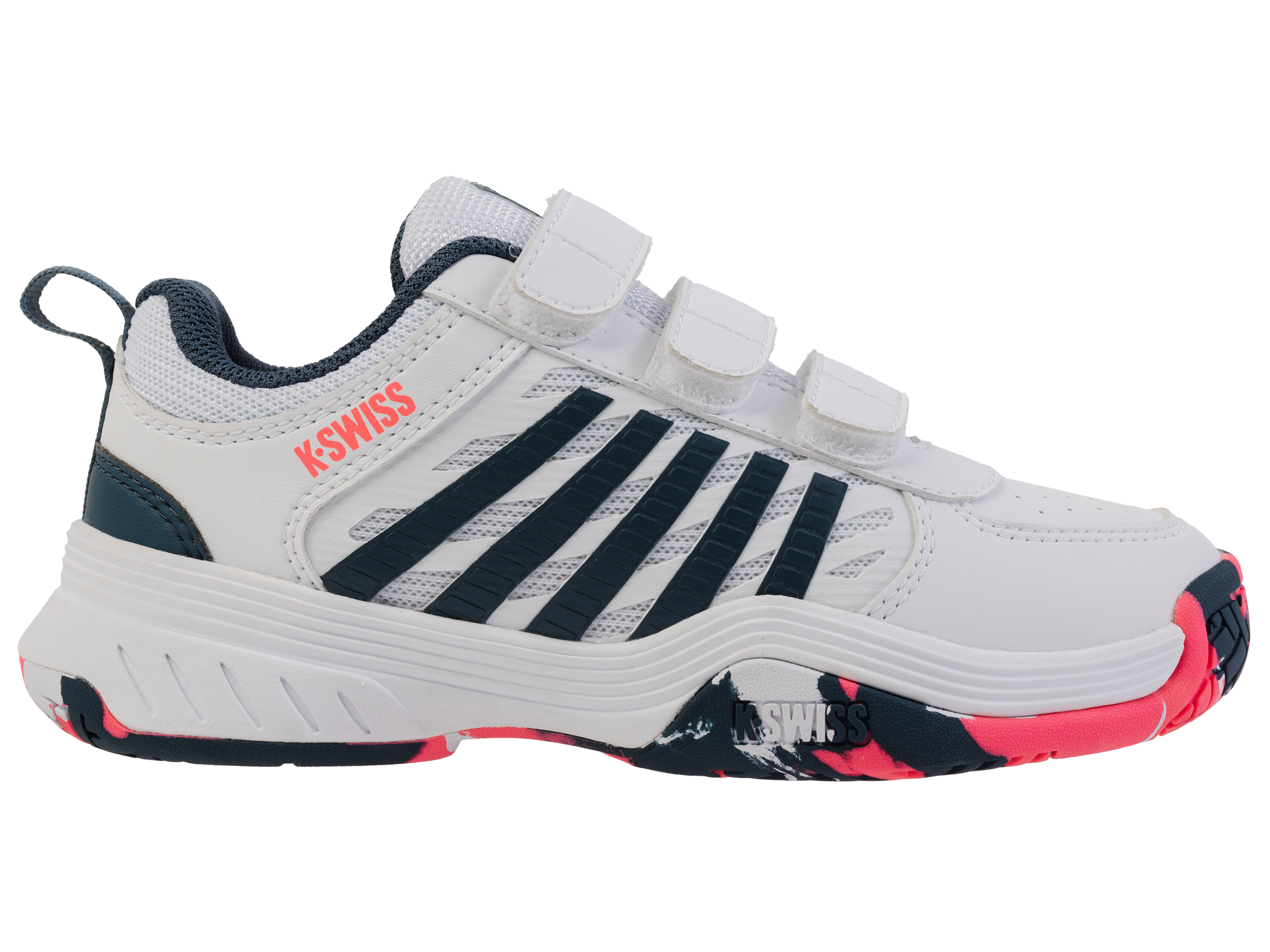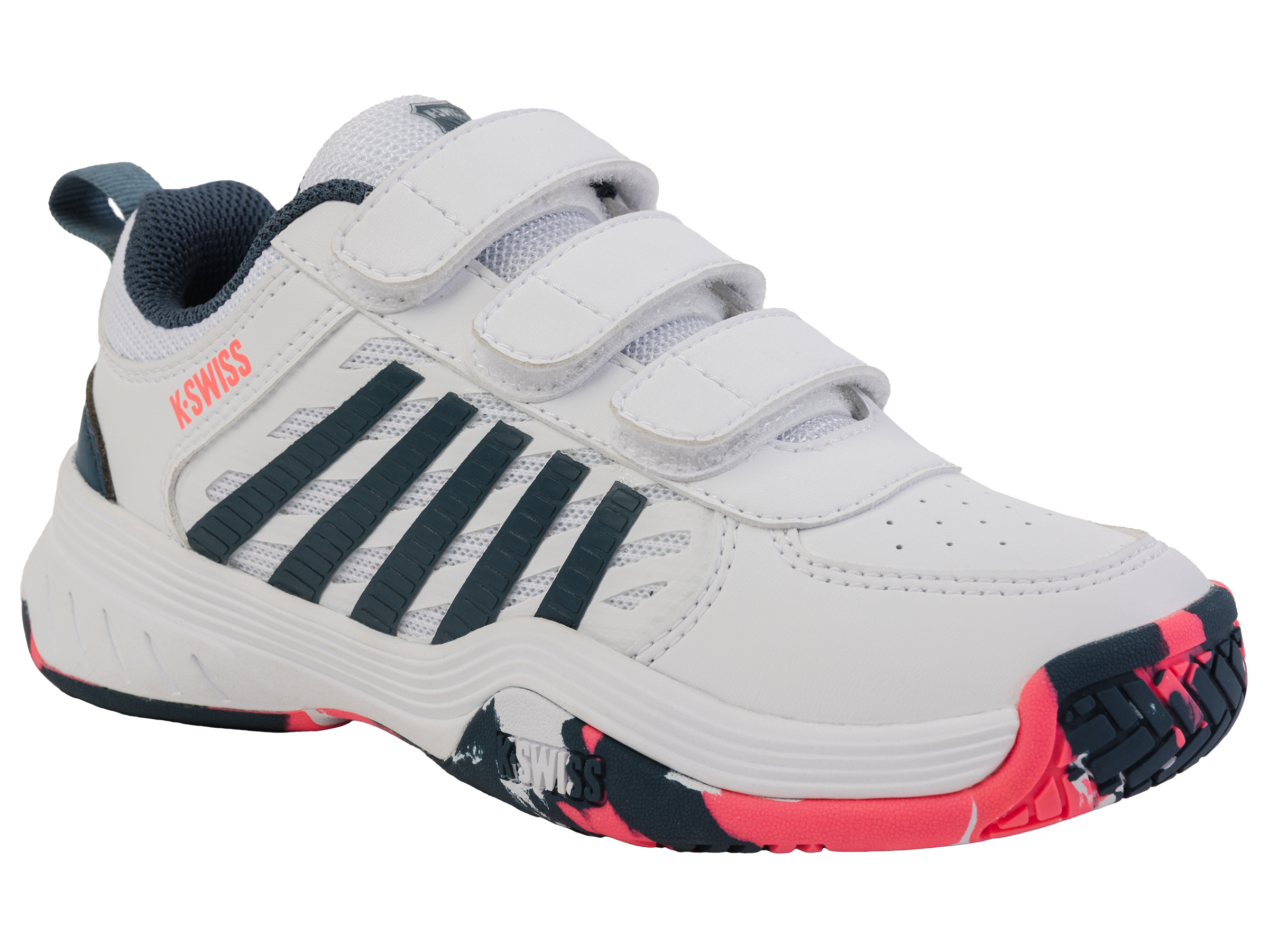 Built on our top-selling Express platform, the new Court Express 2 is the perfect option for children who are starting to learn the game of tennis. Its breathable mesh quarter is paired with a K-EVA Midsole for maximum comfort and support. A non-marking Aosta 7.0 rubber outsole with a herringbone pattern offers optimal traction and extends as a drag guard for increased durability.