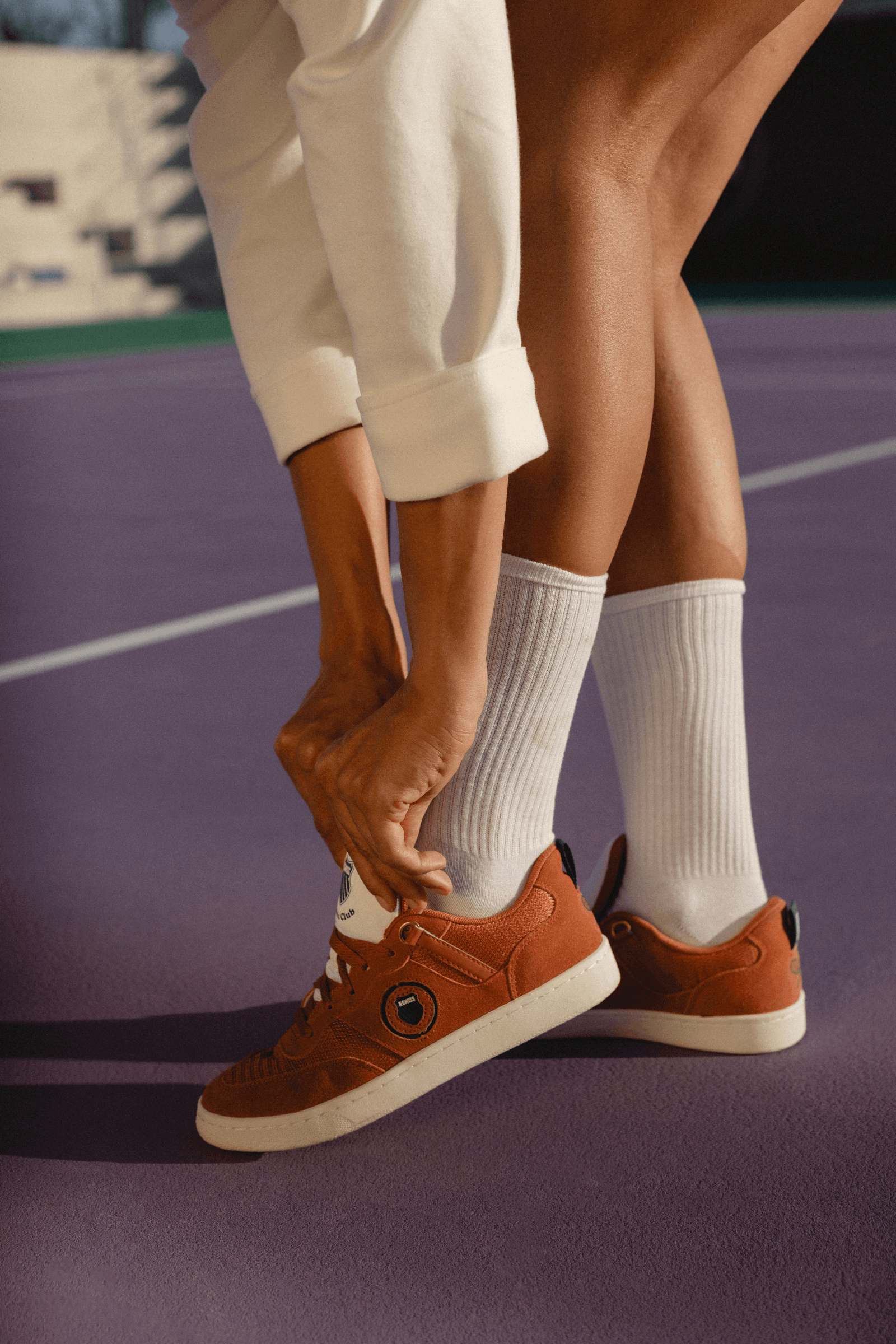 The K-Varsity Sde has a ‘70s spirit imagined for today. It’s been thoughtfully designed with an asymmetric toe box, a unique signature to vintage tennis shoes, and a modern fit. It's sleek last and slim outsole result in an easy to wear chic silhouette.