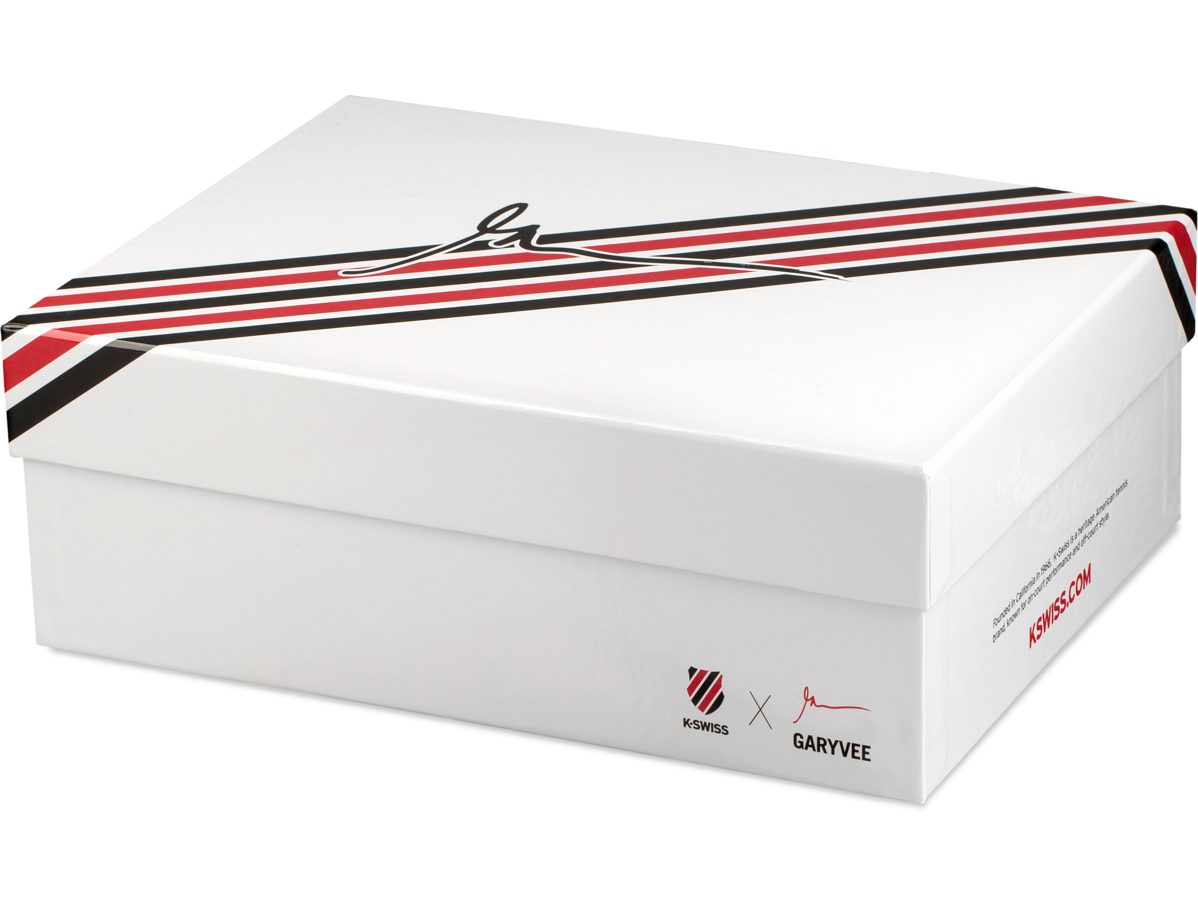 • Embroidered K-Swiss and Gary Vee branding for custom collaborative accents