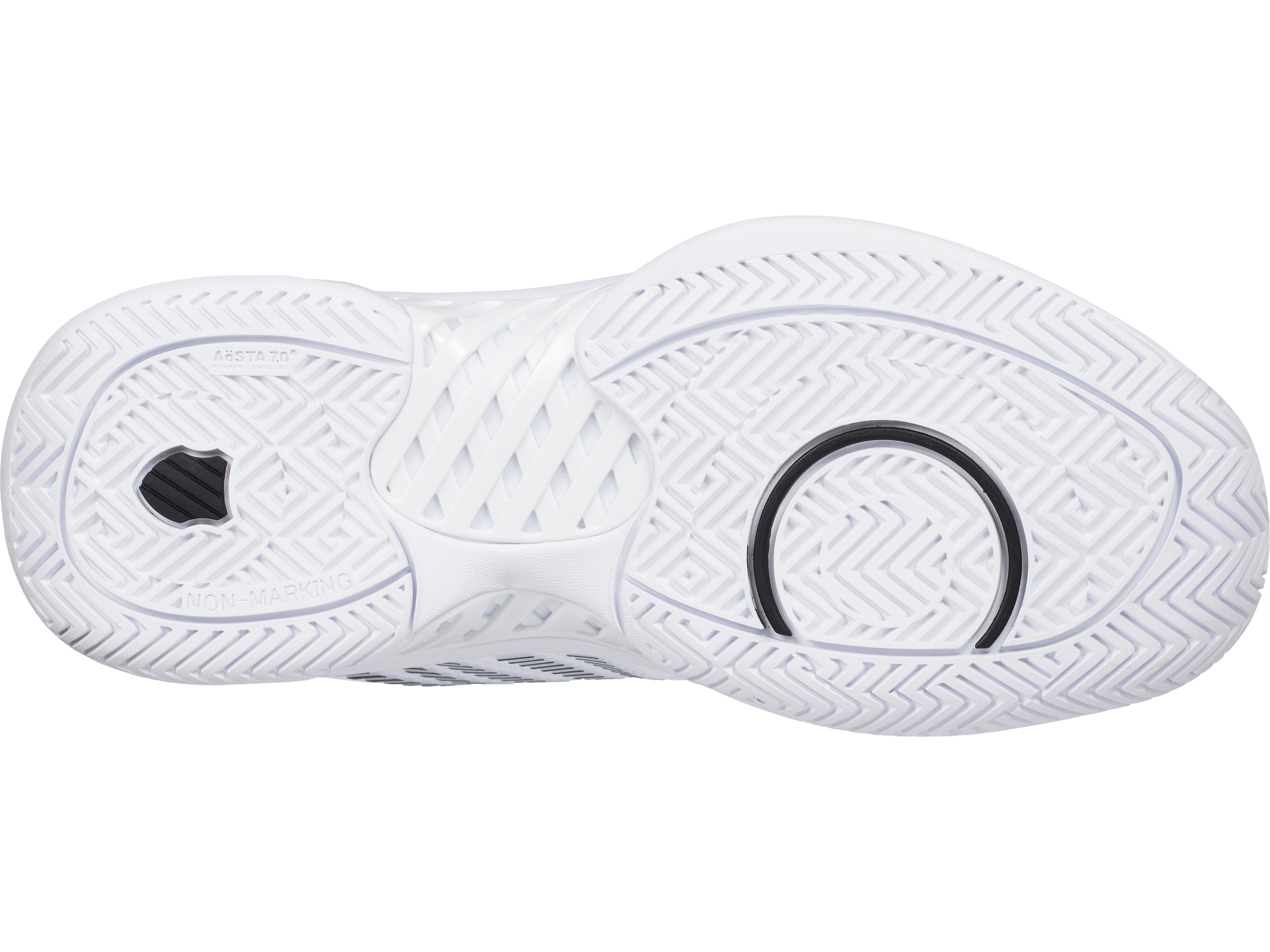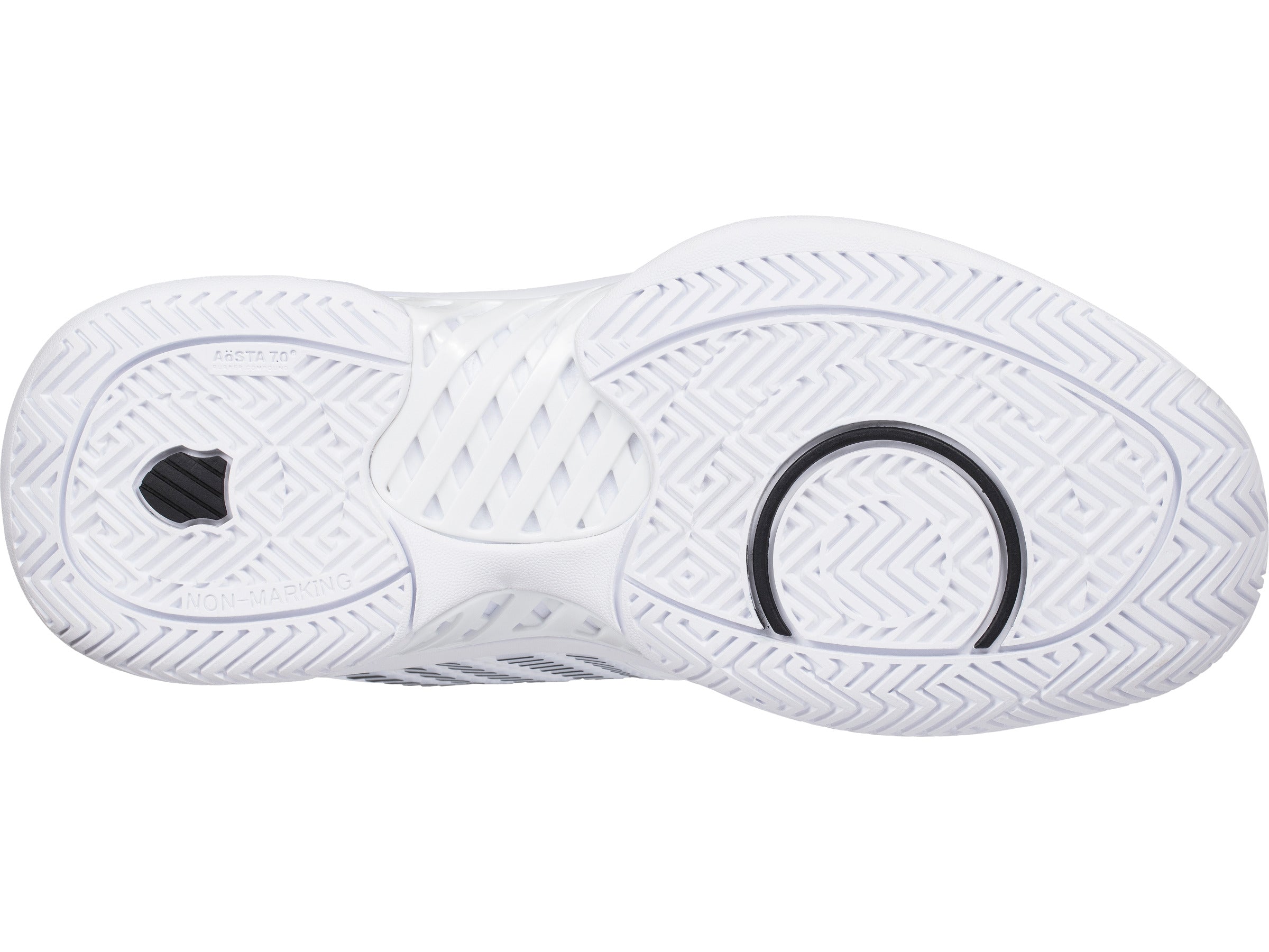DuraWrap und DragGuard in der Laufsohle bieten eine zusätzliche Schutzschicht an wichtigen Schuhstützpunkten. Durch die markierungsfreie Laufsohle ist der Schuh für Kies, Smashcourt und Kunstrasen geeignet.