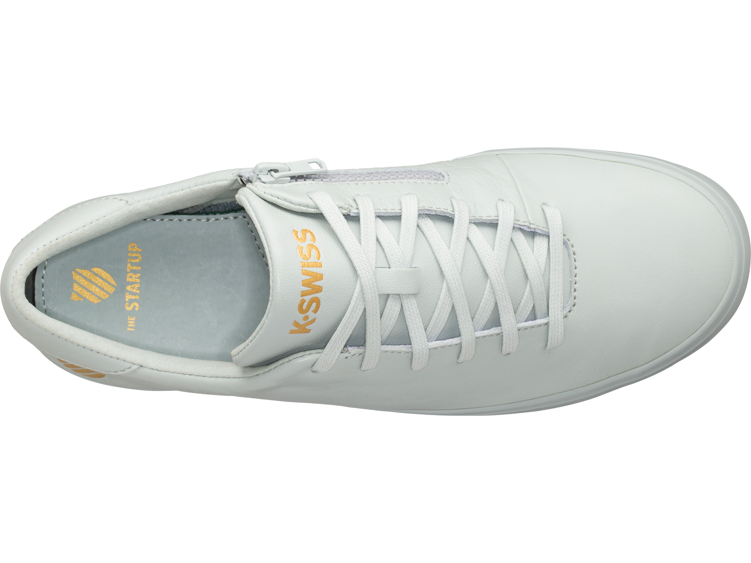 For the grinders and go-getters, the Startup Court Pro is a timelessly minimalist design that delivers all day style and comfort fit for any setting. Inspired by classic K-Swiss court origins, the Startup Court Pro offers a clean, uninterrupted upper of sustainably sourced leather set atop a traditional vulcanized sole. Gold modern branding and inspirational embroidery add to the Court Pro Startup's retro aesthetic and provide a visual reminder of the conviction needed to pursue your dreams. Modern upgrades compliment the vintage inspirations to facilitate the fast pace hustle of modern entrepreneurs. A zipper entry provides easy access to the padded interior while a castor bean oil-based, eco-friendly EVA insole supplies supportive comfort and a mesh instep window aids in ventilation. The result is a stylishly understated and versatile low top built for everywhere from the board room, catching a flight, or grabbing an after-work drink.