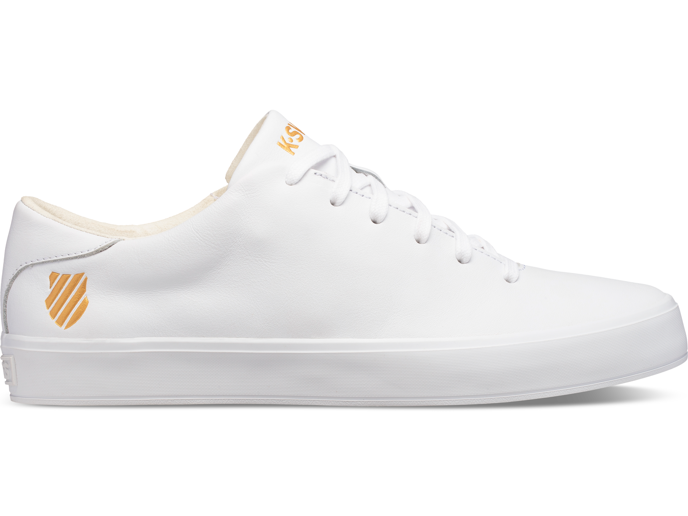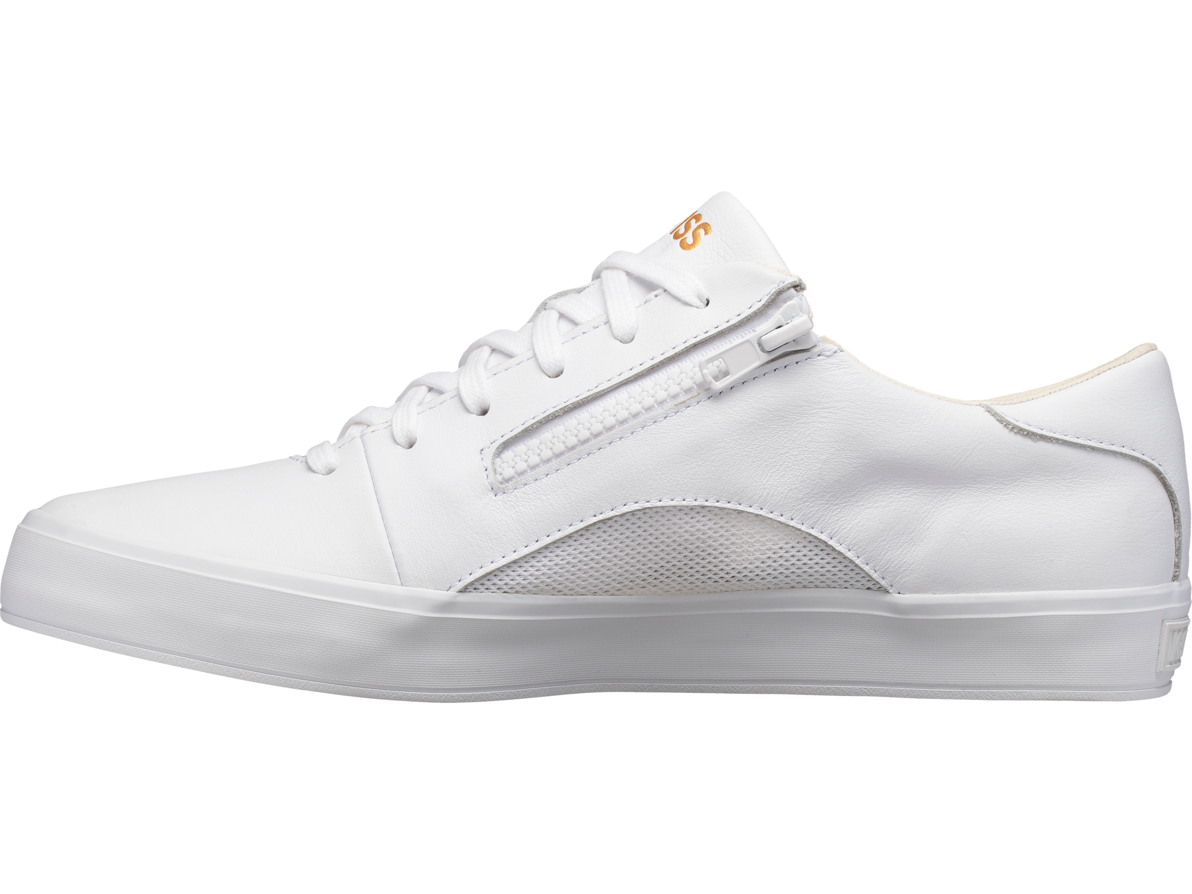 For the grinders and go-getters, the Startup Court Pro is a timelessly minimalist design that delivers all day style and comfort fit for any setting. Inspired by classic K-Swiss court origins, the Startup Court Pro offers a clean, uninterrupted upper of sustainably sourced leather set atop a traditional vulcanized sole. Gold modern branding and inspirational embroidery add to the Court Pro Startup's retro aesthetic and provide a visual reminder of the conviction needed to pursue your dreams. Modern upgrades compliment the vintage inspirations to facilitate the fast pace hustle of modern entrepreneurs. A zipper entry provides easy access to the padded interior while a castor bean oil-based, eco-friendly EVA insole supplies supportive comfort and a mesh instep window aids in ventilation. The result is a stylishly understated and versatile low top built for everywhere from the board room, catching a flight, or grabbing an after-work drink.