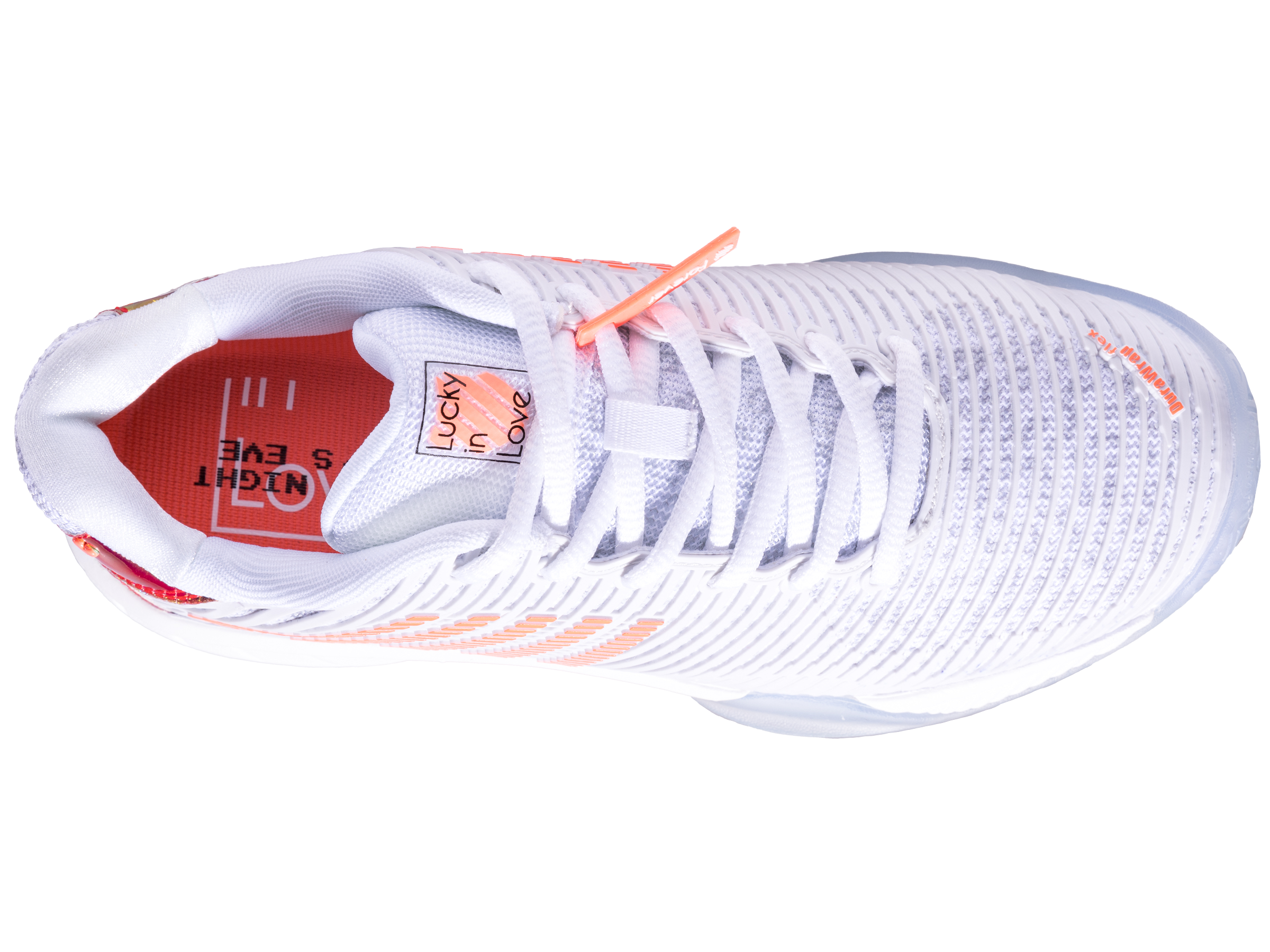 - Ortholite Sockliner: Providing Comfort, Cushioning, Moisture-Wicking, Lucky In Love Customized Messaging On Each Sockliner