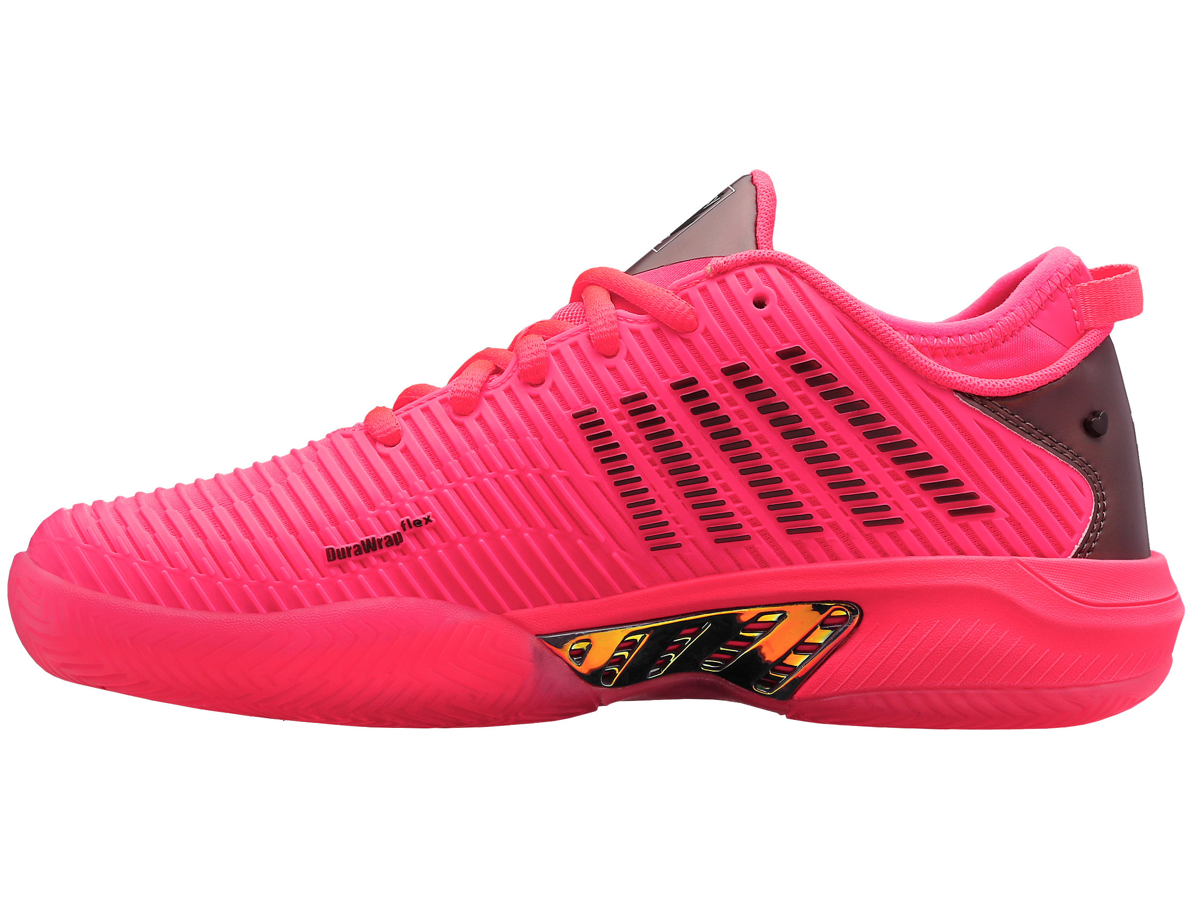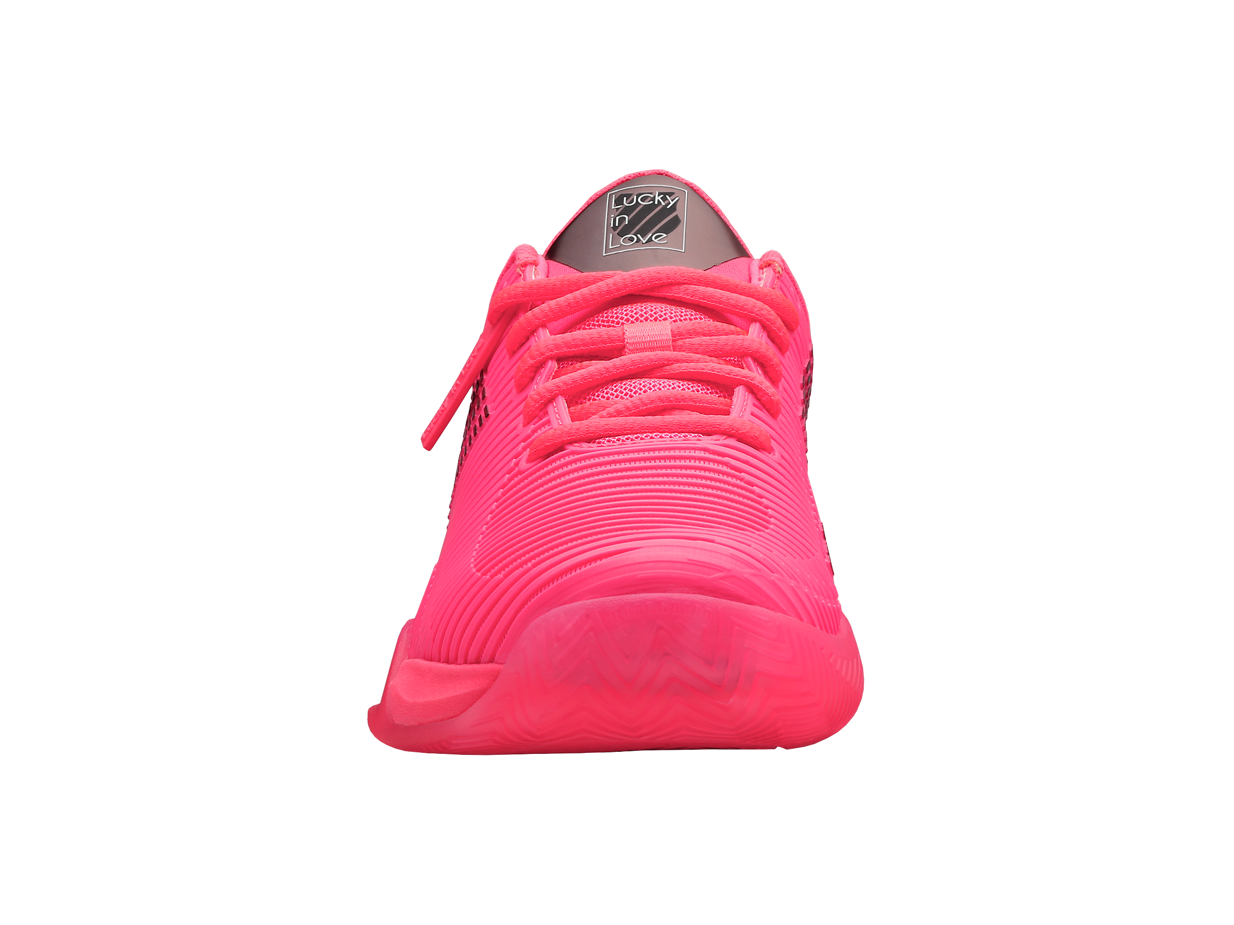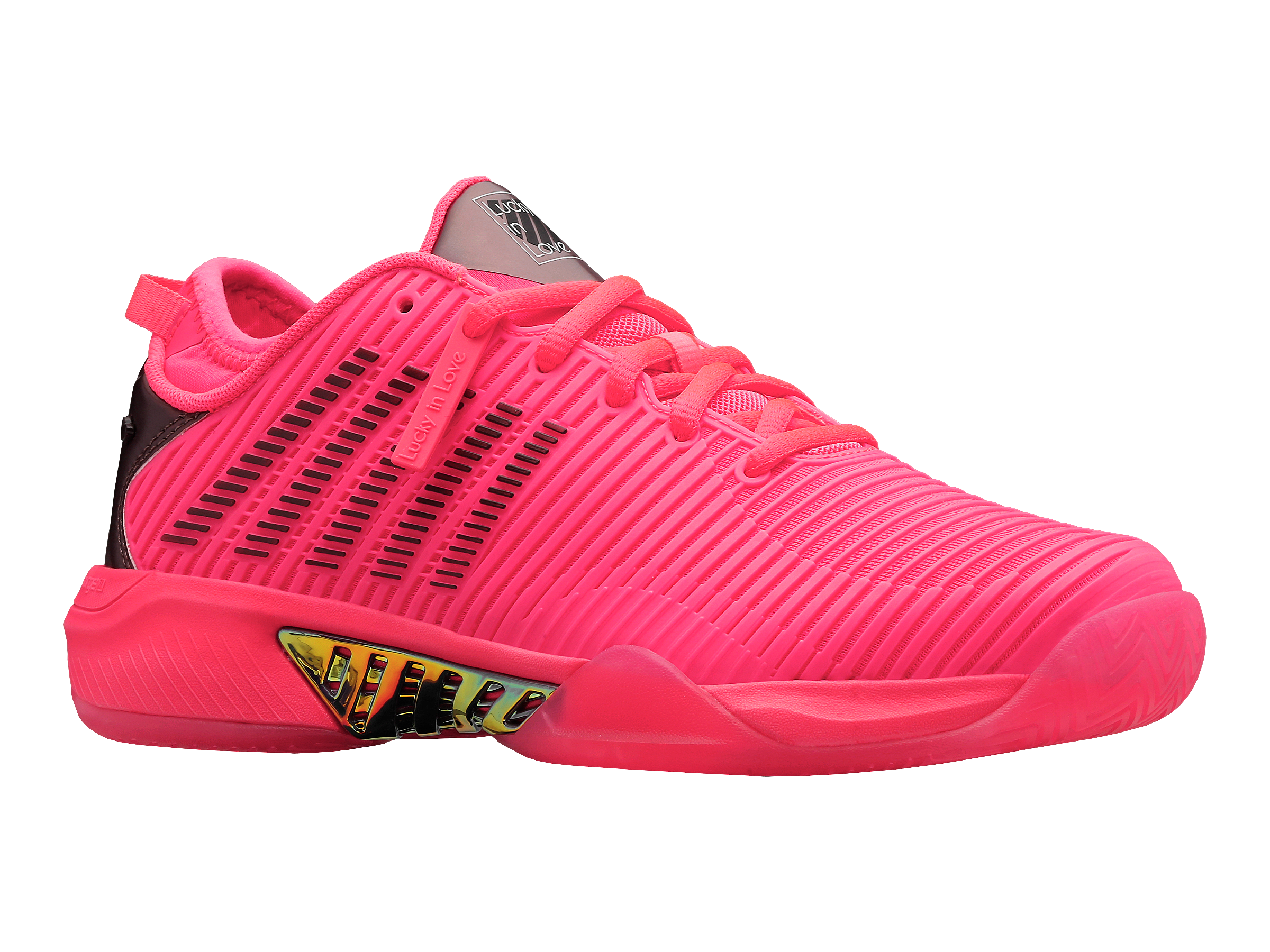 Leading tennis footwear and apparel brands K-Swiss and Lucky In Love make history by collaborating together on a limited edition holiday product. K-Swiss used one of the tennis industry’s top-selling footwear models, the Hypercourt Supreme, and worked with Lucky In Love founder Brad Singer and his design team to create a bright, bold and fun design. The Hypercourt Supreme x Lucky in Love shoe has features not available on any other current K-Swiss footwear model, including collaboration logos, iridescent heel and shank, as well as a translucent outsole.