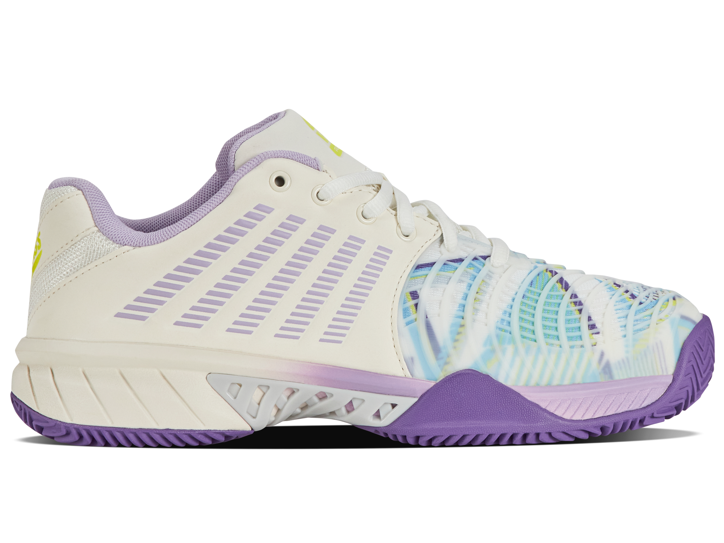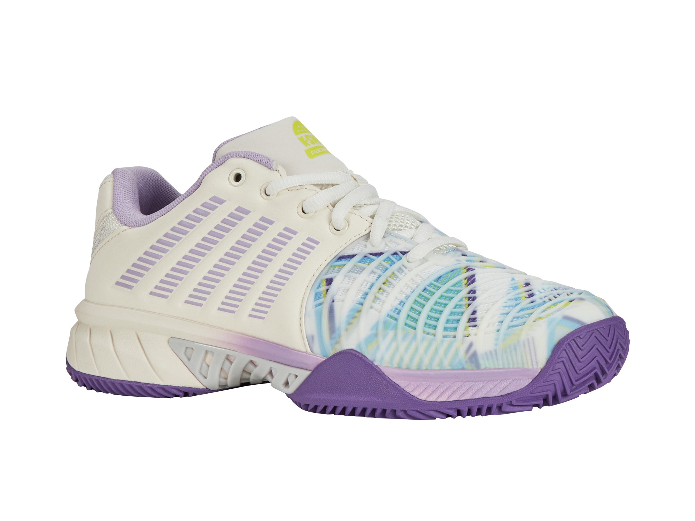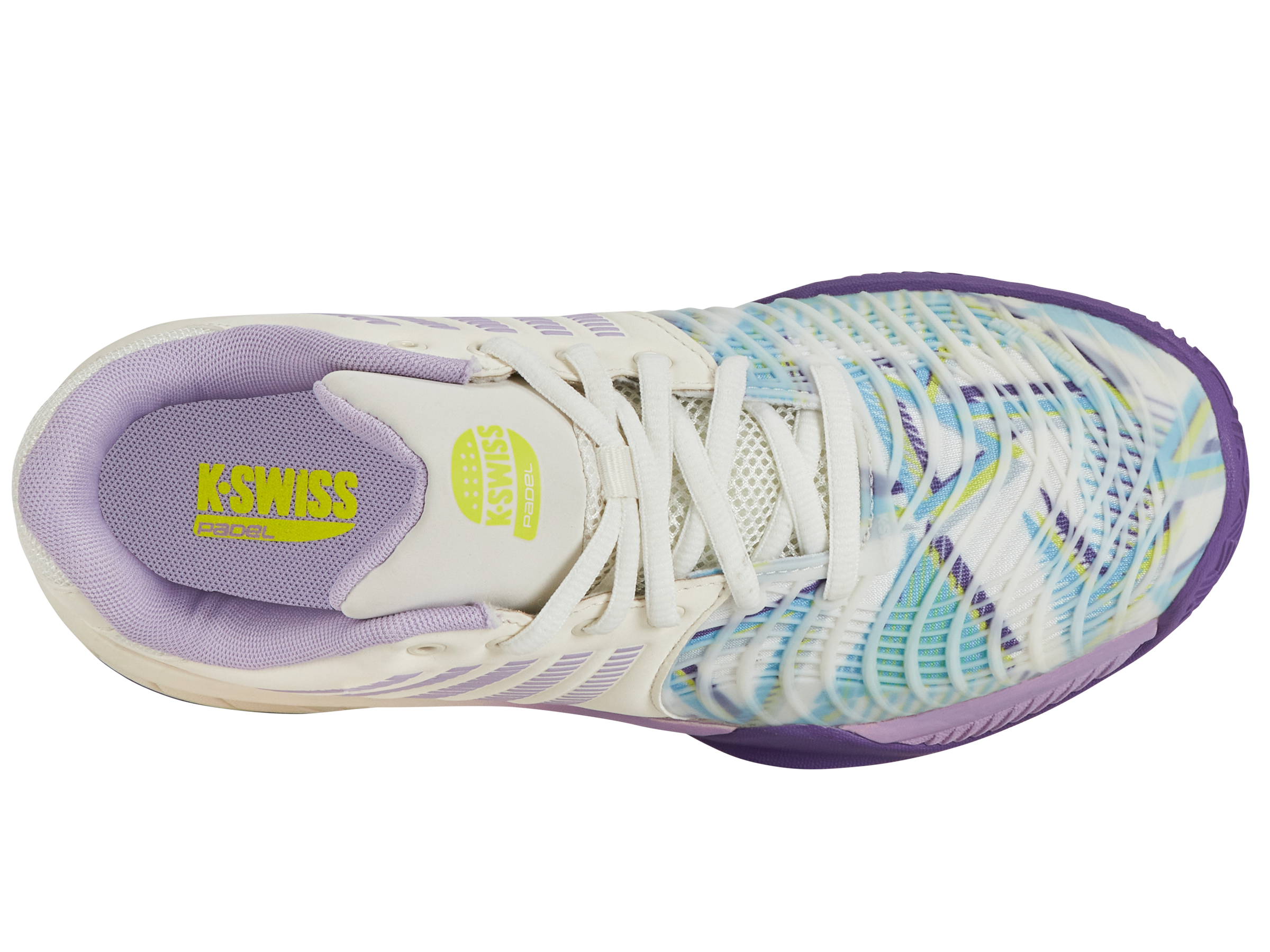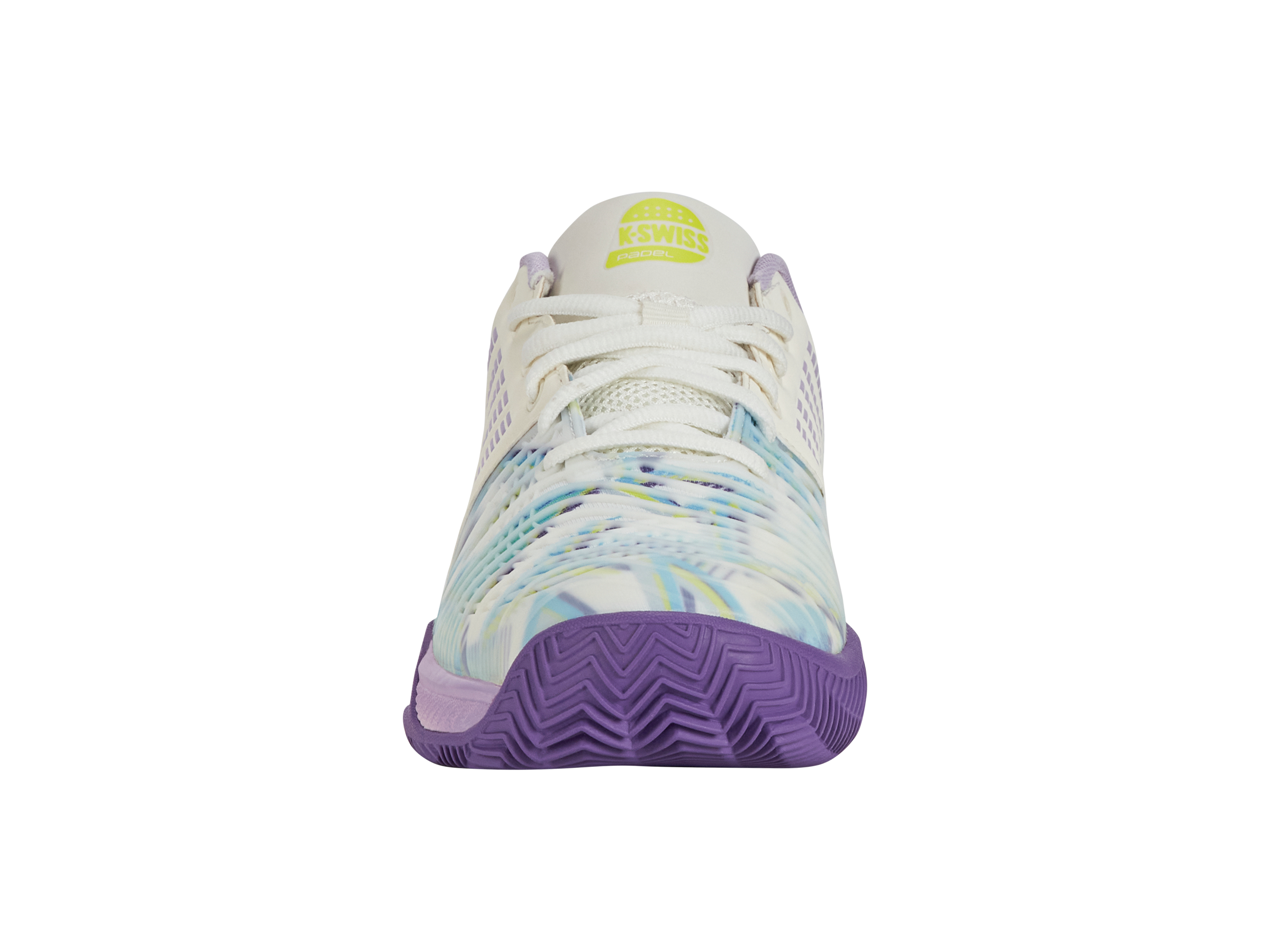 Der Express Light 3 HB Padel ist ein Padel-Schuh mit geringem Gewicht, der für Leistung auf dem Platz und ein hohes Maß an Komfort entwickelt wurde. Das Obermaterial besteht aus DuraWrap Flex, einem neu entwickelten, vorgeformten RPU-Käfig, der flexiblen Halt und Schutz beim Rutschen bietet. Innen bietet ein gut gepolsterter Kragen Komfort und Stabilität im Knöchelbereich, während eine gestanzte Schaumstoffeinlage unter dem Fuß für reaktionsfreudige Dämpfung sorgt. Der Express Light 3 hat eine HB-Außensohle mit tief eingekerbtem Fischgrätenmuster für außergewöhnliche Traktion auf dem Padel-Platz –sowohl auf Indoor- als auch auf Outdoor-Belägen.